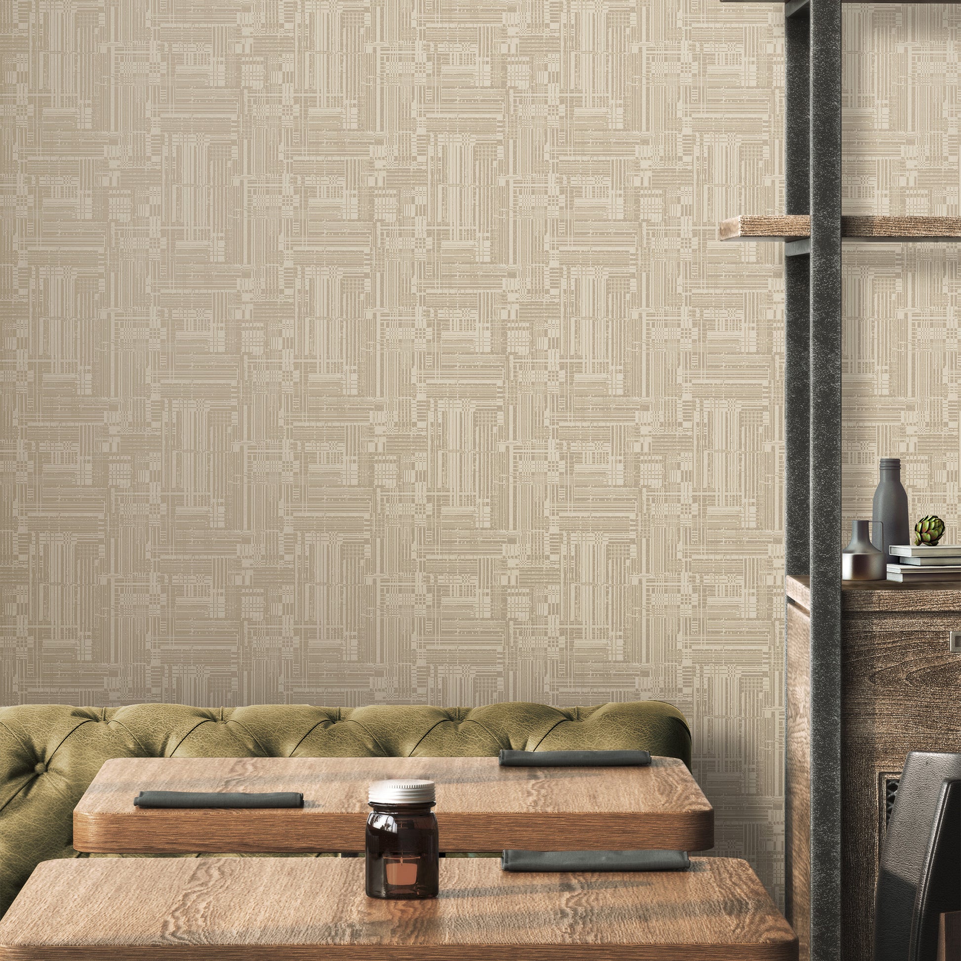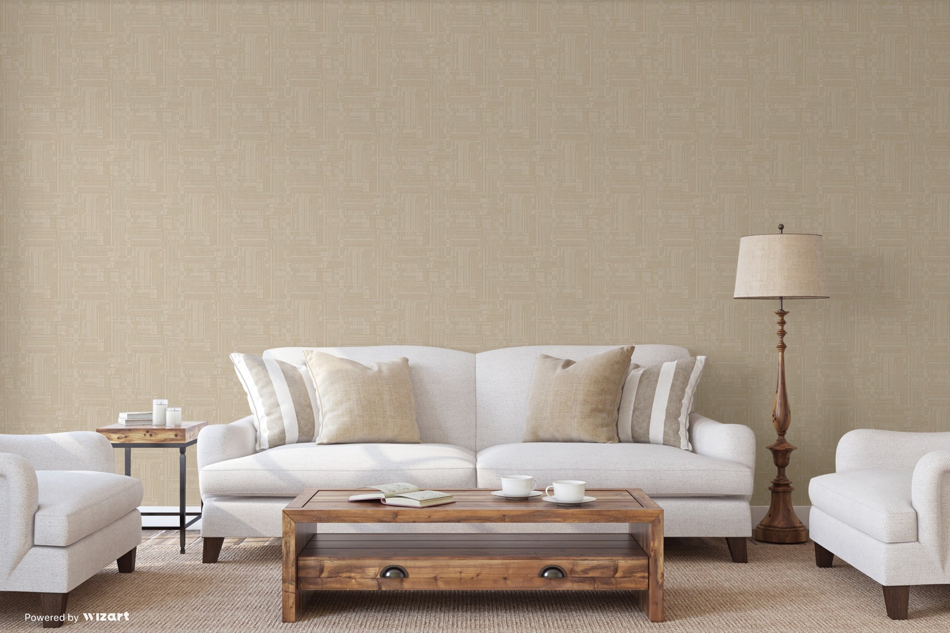 - beżowa tapeta o delikatnej strukturze
