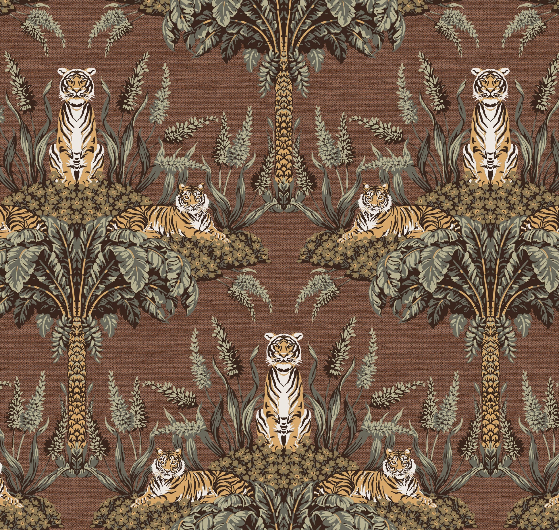 Tapeta Equator Malayan Jungle – kolonialny wzór z tygrysami